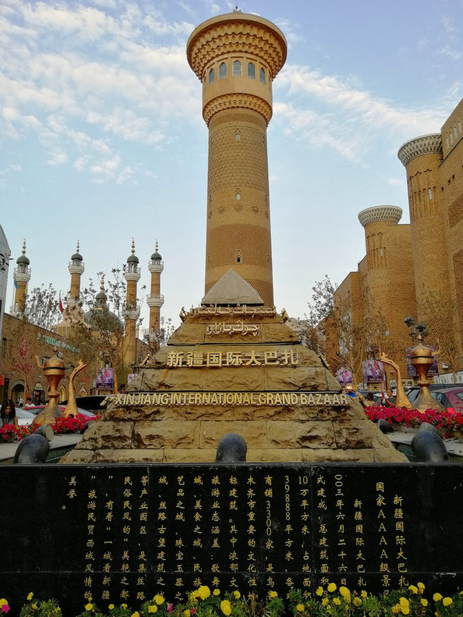 大巴扎有个一个大广场,广场中央就是观光塔,观光塔高约100米,