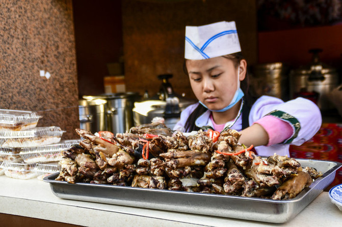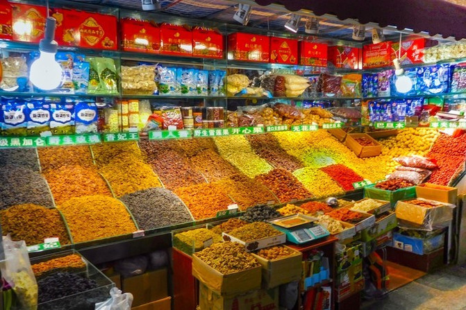 在商场买着各种当地特产旅游纪念品,毯子、药材、工艺品、还有各种衍生品,地下还有家乐福超市,只是那些旅游特产的就是专门针对游客群体的。