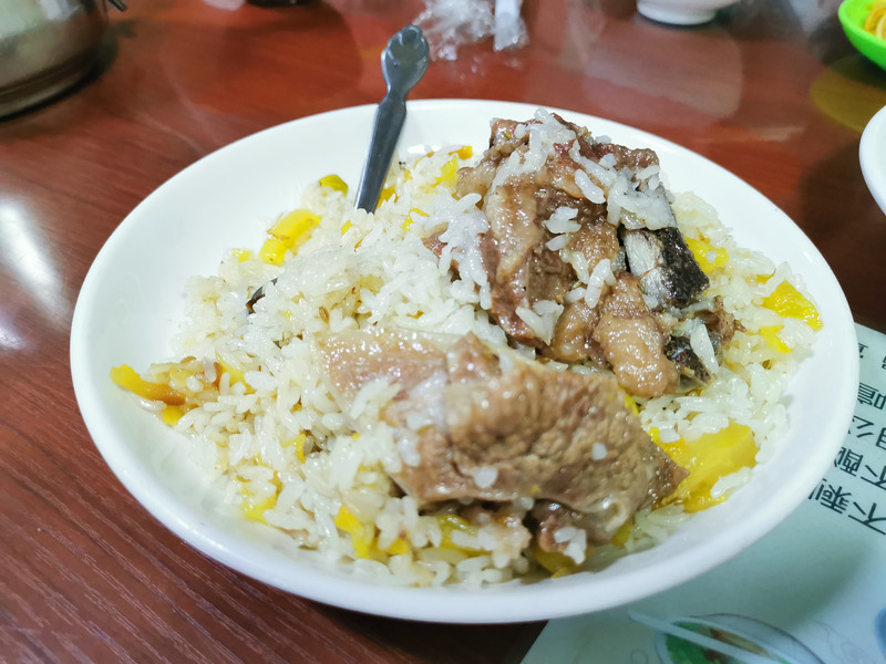 开城仪式简短而热闹,15分钟左右就结束了,人们纷纷的涌入古城。我们就往相反方向走,准备造访喀什博物馆。昨天导游姐姐告诉我们,在博物馆附近有一家手抓饭特别的棒。但由于过了12点就没有羊肉手抓饭了,因此,我们决定在11点时先把午餐吃了,再去参观博物馆。到了店里一看,果然当地人很多,大家都是简单吃一笼肉包子,或者吃一个抓饭。我们要了3个抓饭,果然很适合当地人的标准,羊肉膻味十足,饭油水很够,虽然油腻,但是很香,味道还不错。