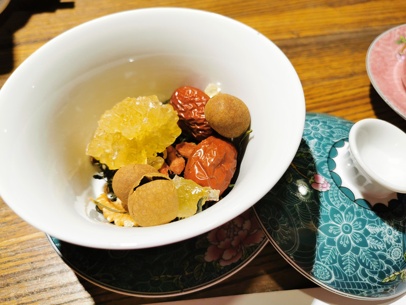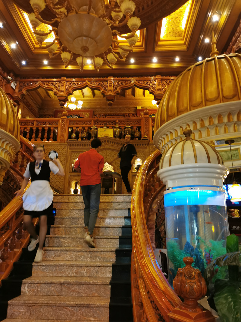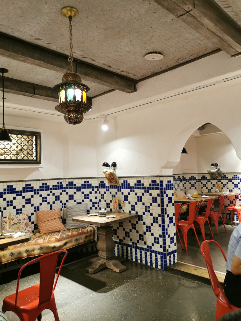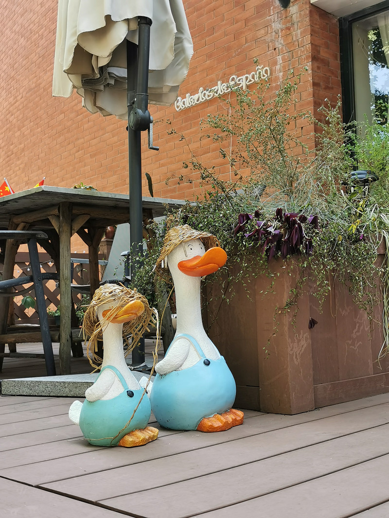 没敢坐在大厅,我们选择了外面骑楼的椅子。
