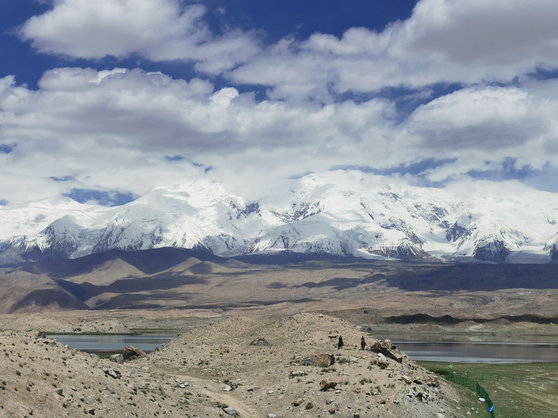 离开了白沙山很快就进入了帕米尔高原,这个时候我们也知道了今天要到的终点叫做慕士塔格峰,是西昆仑山脉中的第三座高峰,其他的两座是公格尔峰、公格尔九别峰,三峰耸立,成为帕米尔高原的标志和代表。维语的意思就是“冰川之父”。在慕士塔格峰可以眺望公格尔峰和公格尔九别峰,景色优美,而且这个是处女峰还没有被成功攀爬过。公格尔九别峰是各个攀登队征服的对象,但不少人在此折戟沉沙了。20世纪80年代,我国女子登山健儿一鼓作气登上了公格尔九别峰,在人类登山史上写下了壮丽的一页。