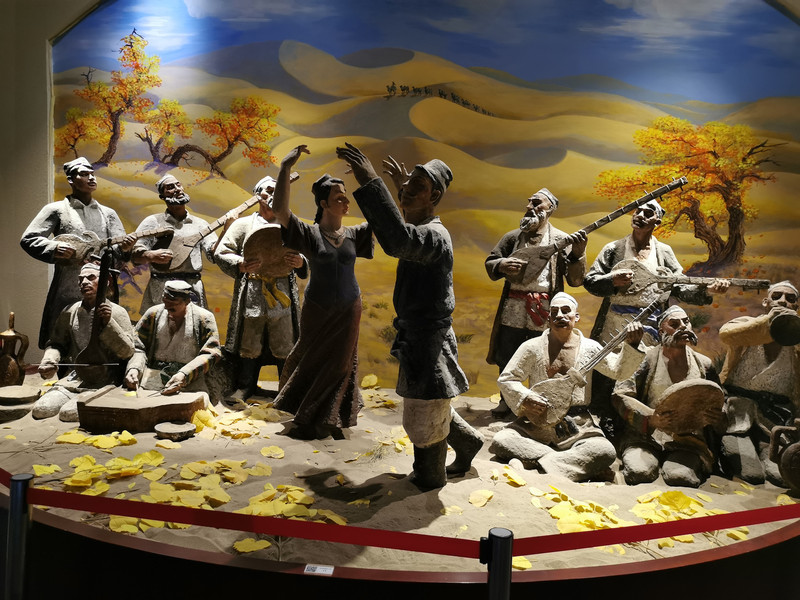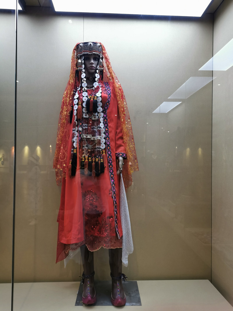 分别是:新疆古代历史文物陈列展馆、新疆革命史料展览、新疆民族风情陈列展览、丝绸之路沿革展馆,还有颇具特色的新疆古代干尸展览和西域服饰展览馆。我们从早上10点逛到下午2点多,也只能仔细地了解其中地三个展馆,还有3个展馆只能走马观花地走一遍。