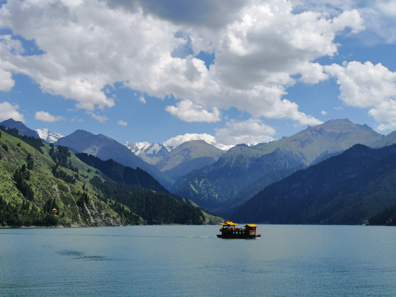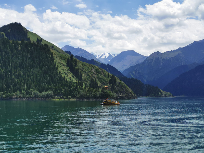 第十一天 乌鲁木齐(天山天池) 来之前看到了不少评论说天山的天池并不是一个很值得推荐的地方,当地人也说这就是皇母娘娘的洗脚池。也许是从小被金大侠的武侠小说荼毒得厉害,对陈总舵主得经理还是很向往的,因此,还是想到天池去看看,在我想象中,它也并不是一个多大的池子,但应该是挺美的。