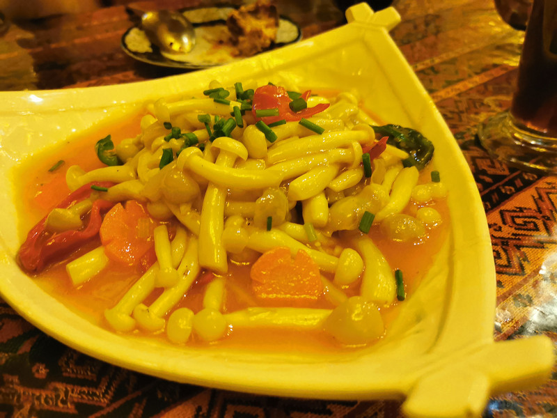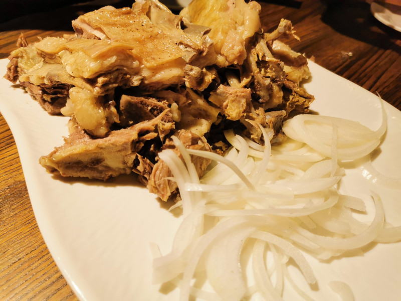 按照地图导航找到美食街,找到那家叫吾吾子羊羔子肉的店。来到的时候已经是下午了,店里的客流高峰刚刚过去,我们可以安心享受店里的美食了。要来了大碗茶、羊羔子肉等新疆特产美食,好好的安抚一下造反的胃,就去找超市,准备买手信。