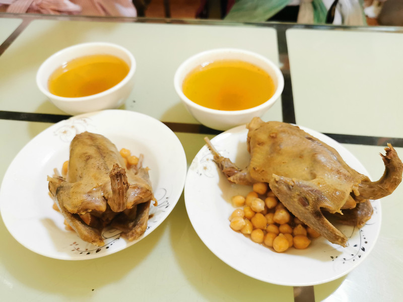 下午4点左右我们就拿着行李走出喀什机场。在喀什,我们选择了古城旁边的如家酒店,旁边还有军区,感觉挺安全的。机场到老城不远,半小时左右就到了。来到了酒店整理了一下,就去找吃的。就在旅店斜对面就有喀什美食“鸽子汤”。由于飞机上还是吃了一点点飞机餐,我们不觉得很饿。两人要了一份鸽子汤,汤浓、鸽子嫩,泡上馕很不错。吃完后随便找了个门进了老城遛弯,消消食。当然消食地过程当中吃了个甜品,中午时分,吃个雪糕还是很不错地。到了8点左右,慢慢的溜回来。