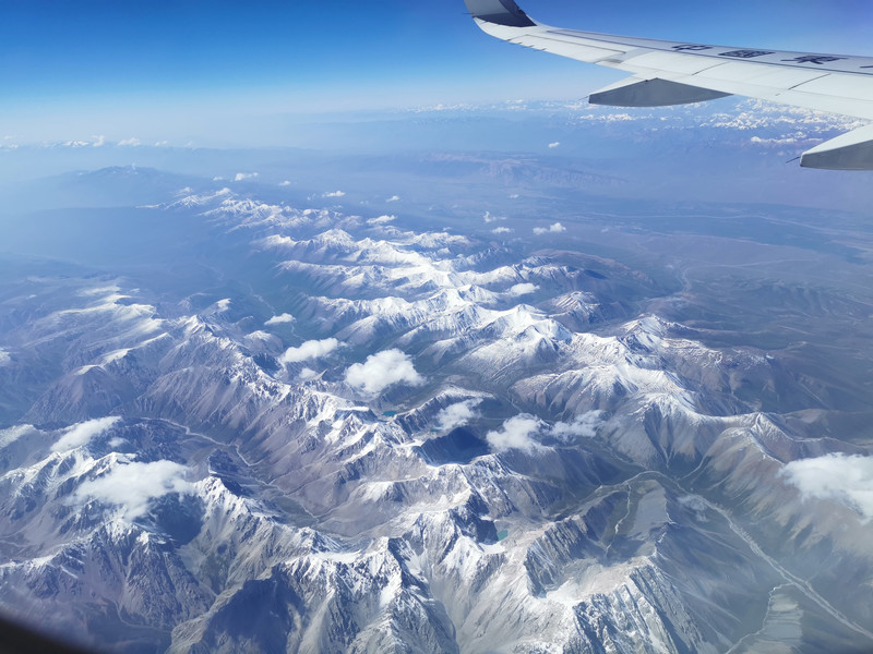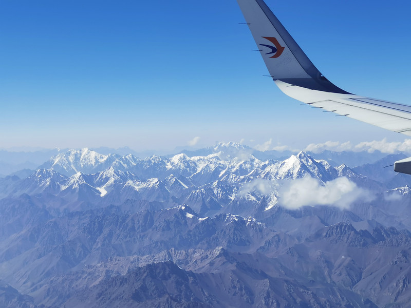 本以为今天就没什么景点可看了,运输工具上度过一天的时间,好好的准备明天的旅程,没想到在飞机飞过昆仑山山脉的时候,在飞机窗户里看到了难得一间的航拍美景。延绵的山脉和雪峰,形成了美丽的奇观,随着飞机的飞行,景色不断地变换,美不胜收!