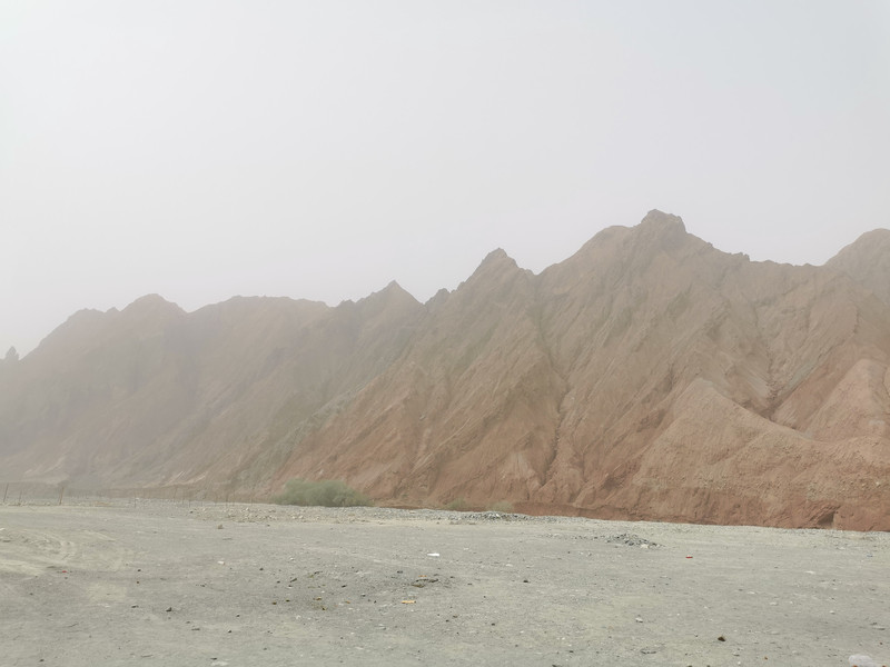 这一次,我们的一车人基本上没有人出现不适的反应,体验到了高原的美景。回来的时候,我们还会经过红山峡谷。红山的地貌和火焰山的地貌是一样的,因为地理的原因,它比火焰山的山体还要红艳。可惜,在我们经过的时候天气条件太差了。在景点大门处,只能朦朦胧胧的看到遍体通红的山体。