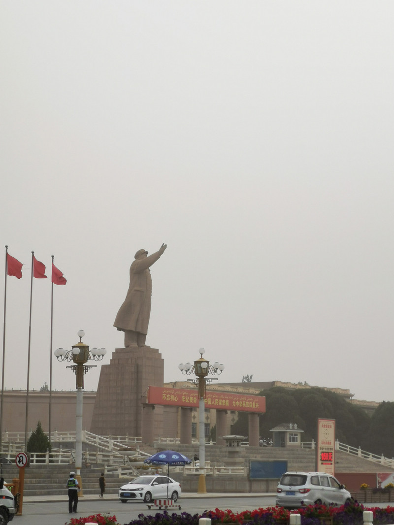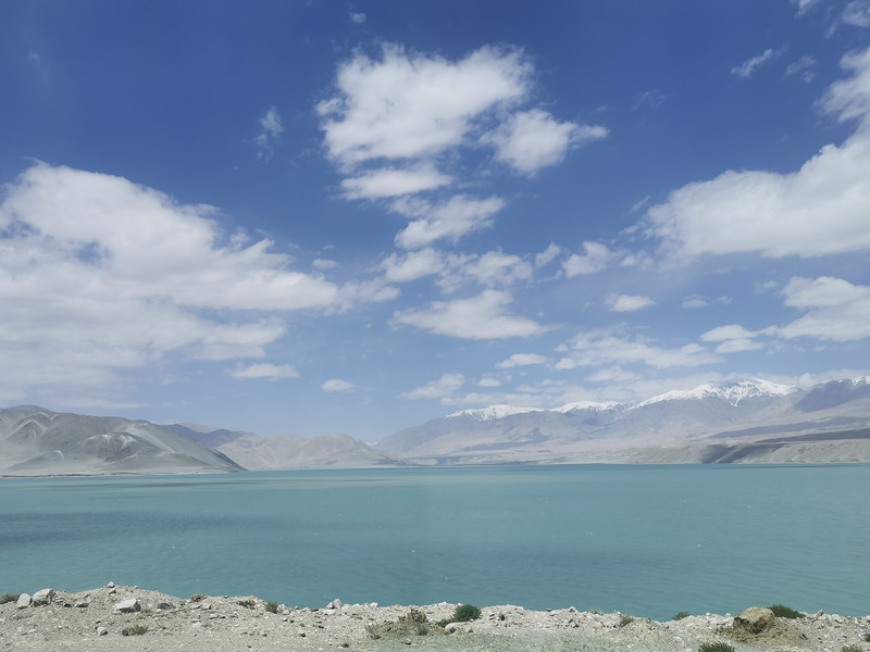 第十五天 喀什--白沙山、流沙河--帕米尔高原(卡拉库勒湖)--喀什 经过一天市区游览的休整,我们精神恢复了不少。今天我们要冲击帕米尔高原,刚开始的时候,大家有点怕高原反应,有些举棋不定,后来觉得我们不能再呆在市区,于是在前一天在携程上报了一日游的旅行团。按照导游的要求,清晨打车到指定旅店门口集中。昨天查了天气预报,今天的喀什要下沙了,天灰蒙蒙的,一张嘴说话,满嘴都是沙子,确实市区不能呆了。