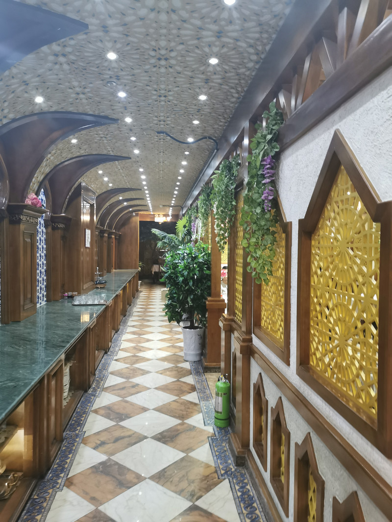 趁着人不多,我们先赶到艾提尕尔清真寺参观。这座清真寺是有实用功能的,因此当穆斯林在里面坐礼拜的时候,是不对外开放的。要等到这一个时段的礼拜做完,才可以参观。我们到的时候正好是祈祷时间,我们等了半小时左右,才得以买票进入,门票45元/人。走进清真寺,有工作人员分批为游客作讲解。