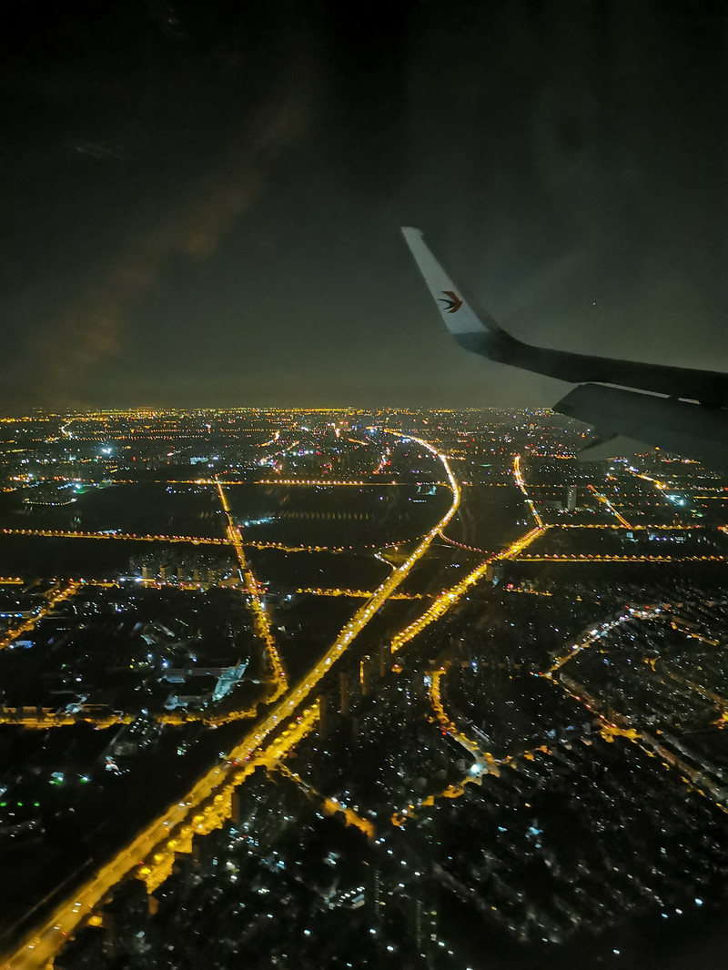 经过长途地飞行,在晚上地12点终于来到了上海虹桥机场,虽然已经夜深了,但上海也不负其不夜城地美誉,飞机上看到地夜景也是非常地美。