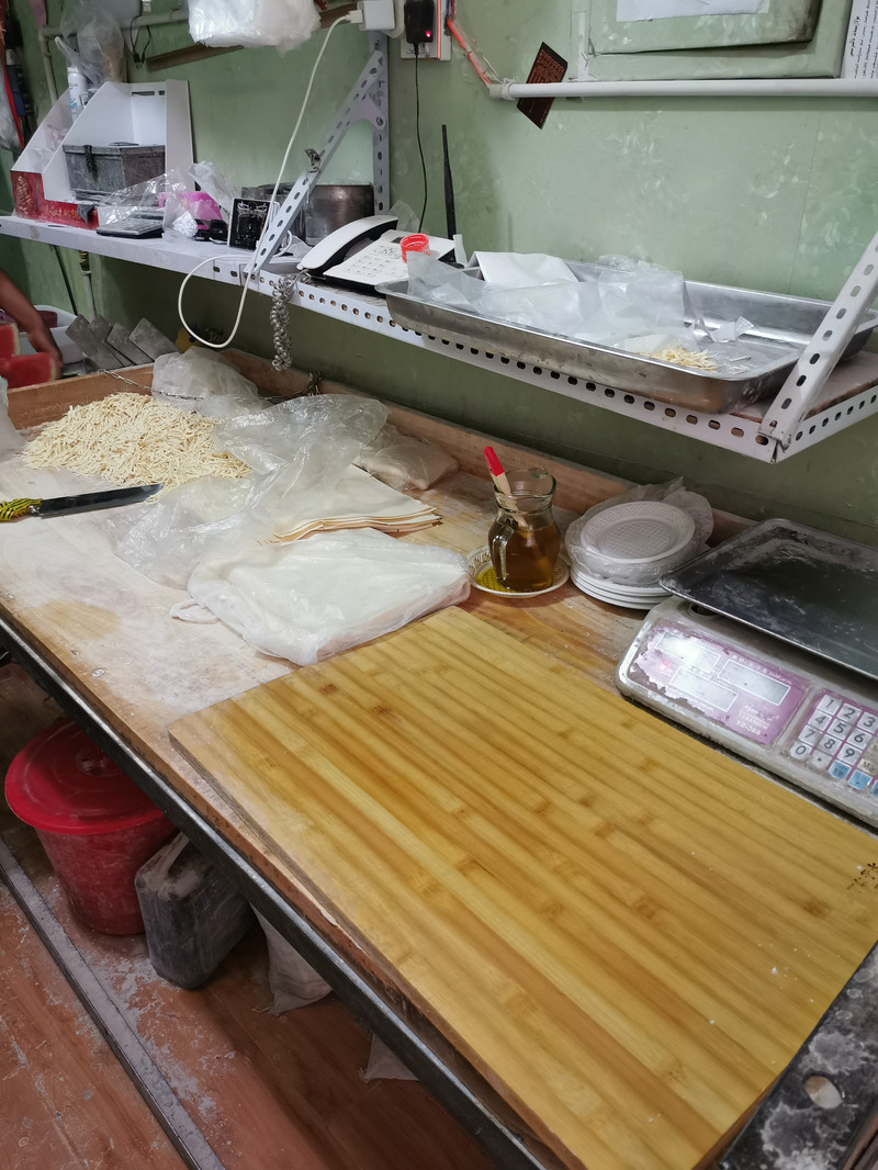 当然,在路上还是买了一个西瓜,最后享用一下新疆甜美的瓜果。前几天在古城附近,买的瓜果都很贵,因此今天难得路过居民区,我们也享受一下当地居民的便宜待遇。可是问题来了,在居民去卖西瓜的老板是不能在街上自备刀具的因此,买好的西瓜根本没有办法切开。最后在我们强烈要求之下,还是在老板娘找了一家相熟的面点铺子,在里面帮我们把西瓜切开。想着面点店的老板帮了我们这么大的忙,我们也吃不完这么大的西瓜,就把1/4的西瓜留给她做谢礼了。当然,这样也看出新疆地区对刀具的管制之严格,不说这一路走来的查岗,就是那买肉的铺子也在外面加上铁栏,店主坐在里面,刀都是用铁链锁起来的。