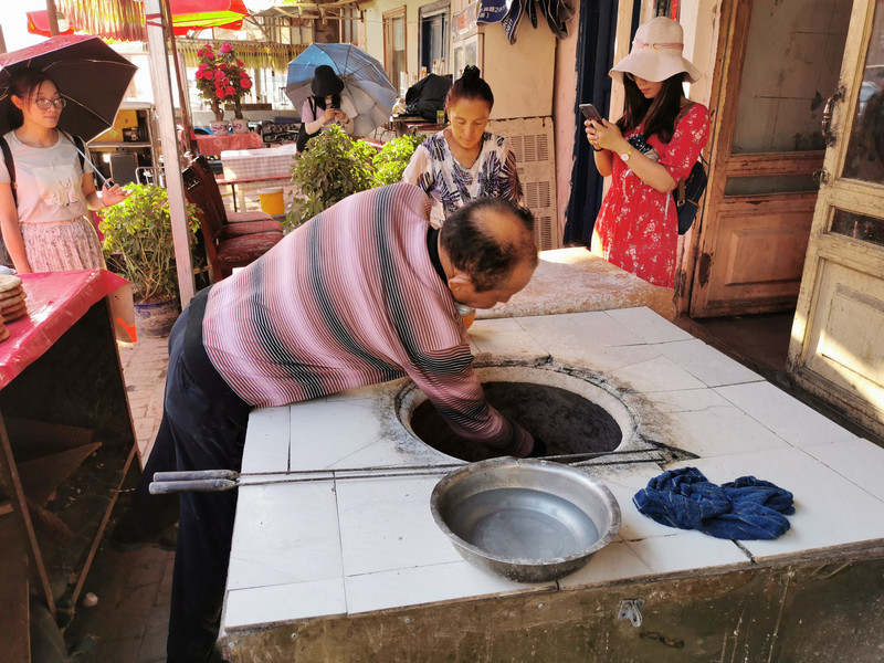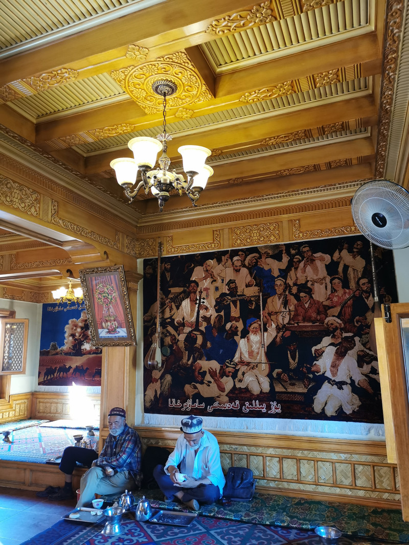 老茶馆以前只是对男客开放,是女性的禁区。现在,旅游业发展,茶馆也向女客开放了。但还是有很多维族的男子在这里喝茶,聊天。让我们走到大厅有点感觉怪怪的。