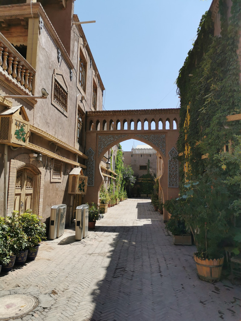 喀什,原来是西域诸国当中的疏勒。最早的记载见于我国西汉时张骞所记载的古疏勒。历史街区土石路面的巷道,宽一点的能走驴车,窄的两人并肩难行;街巷长者600多米,短的50米就到尽头。早上的时候,旅客并不多,只有居民出来活动,置身其间宛如置身于新疆维吾尔族民俗风情的生动画卷,享受着生活的安逸与宁静。