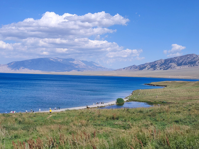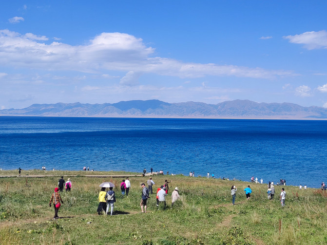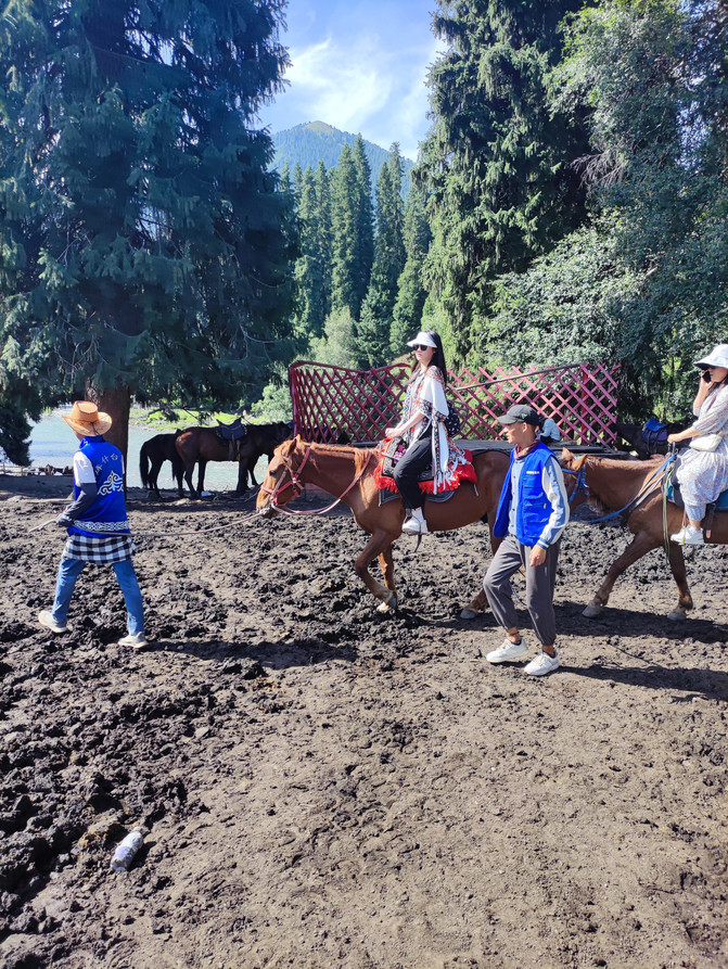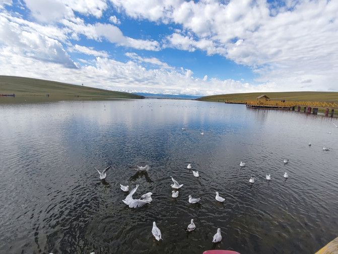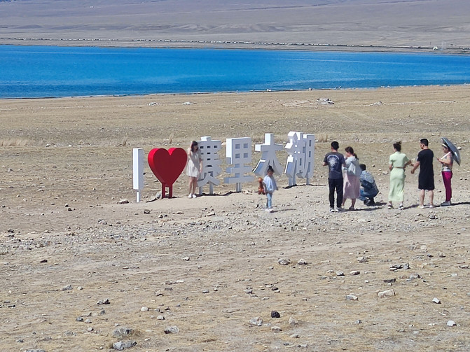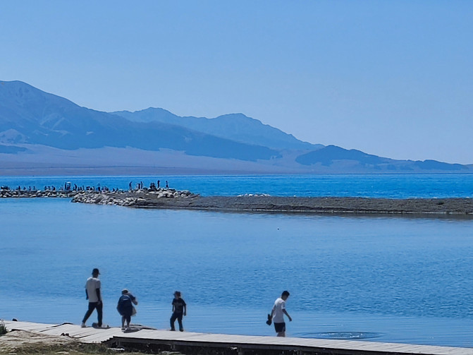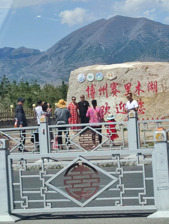 第二天驱车直奔大西洋最后一滴眼泪的赛里木湖,是新疆大西洋暖湿气流最后眷顾的地方,位于新疆博尔塔拉蒙古自治州博乐市境内北天山山脉中,赛里木湖原本没有鱼,1998年从俄罗斯引进高白鲑、凹目白鲑等冷水鱼养殖,2000年首次捕捞成品鱼,结束了赛里木湖不产鱼的历史,经过十年的发展,已成为新疆重要的冷水鱼生产基地。但当地餐馆白鲑鱼价格偏高。我们驾车环湖绕行一周。湖泊东西长20公里,南北宽30公里,面积454平方公里,最大水深86米,湖略呈卵圆形,湖水面坦荡,碧绿清澈,四周群山巍峨,幽林绣草。湖面黄鸭群集,水鸟啾鸣,天鹅掠水,鱼翔浅底,充满盎然生机,四周漫山遍野层层叠叠的松柏苍翠墨绿,湖滨碧草繁花,毡房星点,风景如诗如画。我们看到一些拍婚纱照的来这里取景。赛里木湖形成于喜马拉雅造山运动时期,地质学称为“地堑湖”。而且赛里木湖盆地的第四纪湖泊沉积记录了西天山的地貌发育和古冰川作用的全部历史,反映了我国西北与中亚地区第四纪气候与环境的几个变化阶段,同时也为西北地区冰期与第四纪地层的划分提供了科学证据。