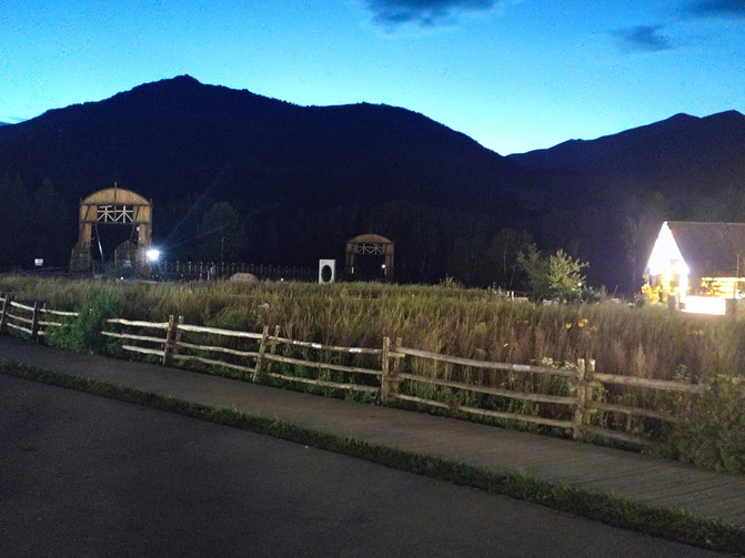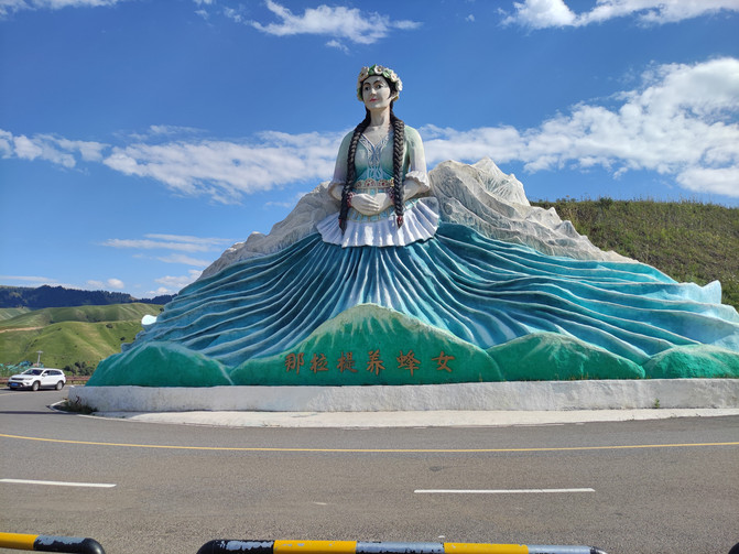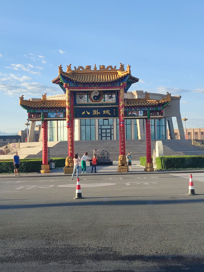 从赛里木湖开车晚上到达特克斯城(八卦城),遗憾的是个,我们晚上到达八卦城,一早离开,没有登上城中心五十多米高的八卦观光塔,领略到这座县城的魅力。但晚上体验小城的“八卦城之夜”领略这座小城的魅力。这是一座我国历史上第一位和亲公主细君公主生活的城市;这是一座诞生了我国历史上第一位女外交家的城市;这是一座传说由"长春真人"邱处机设计的城市,这是一座现在在我们这个国家里可能绝无仅有的一座不需要红绿灯的城市(有关部门1996年取消道路上的红绿灯,八卦城由此成为一座没有红绿灯的城市)。
