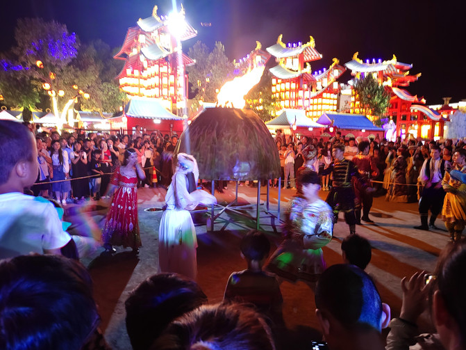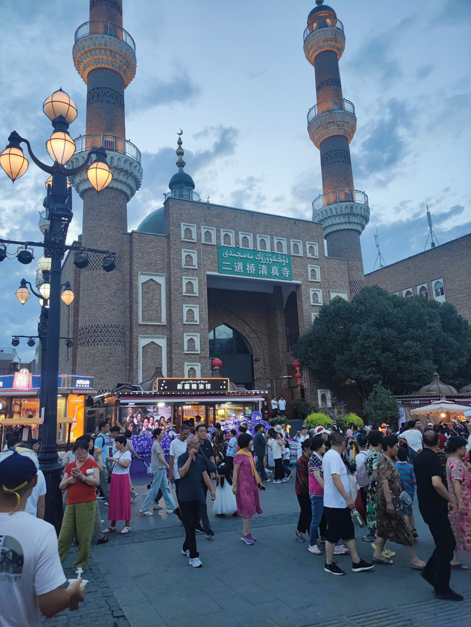 晚上来到二道桥国际大巴扎。集特色建筑、民族商贸、歌舞演艺、特色美食、珠宝玉器等丰富业态于一体的AAAA级景区。成为一张新疆文化旅游金名片,是新疆一扇对外的“新疆之窗”。大巴扎还是值得一游!这里有五彩缤纷的商品、充满民族风情的美食,但价格有些偏高,但到了乌鲁木齐,一定要来这儿打卡!