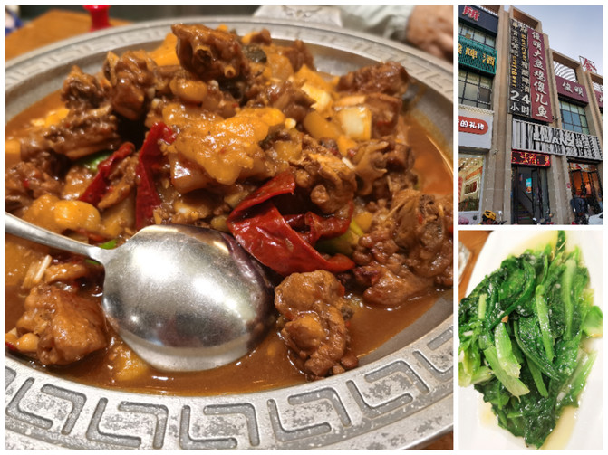 我们9点多到的,大概是用餐高峰,排了几分钟才有桌子。因为只有三个人,战斗力不足,就只点了一份大盘鸡,一份油麦菜。菜品上的很快,油麦菜比较嫩,量一般。大盘鸡有专门定制的盘子,量很足,我们点了微辣,鸡肉还是很入味的。