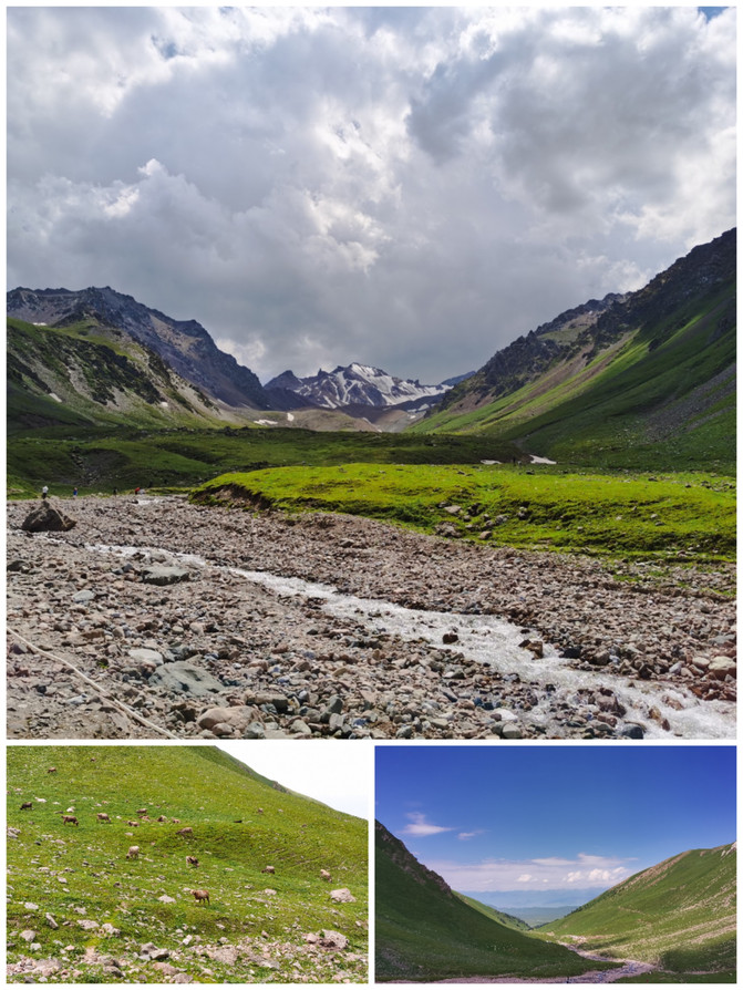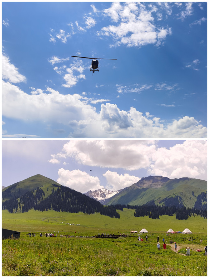 到达那拉提后,先乘坐景区交通车,站点1是个观景台,也可以从大门缆车上来,可以直接感受远处的蓝天、白云、草甸、雪山带来的视觉冲击。有网红小羊可以拍照,20元一次。不过个人感觉没太大必要。站点2主要是骑马和直升机体验,我们直接到了第3站游牧人家。行程时间短的小伙伴可以在这里拍拍照,然后原路返回,距离集合时间>2小时的小伙伴可以我们一样继续前进。购买前往雪莲谷的交通车,人满发车,有两站,建议先前往第二站,因为景色更漂亮,距离雪山更近。