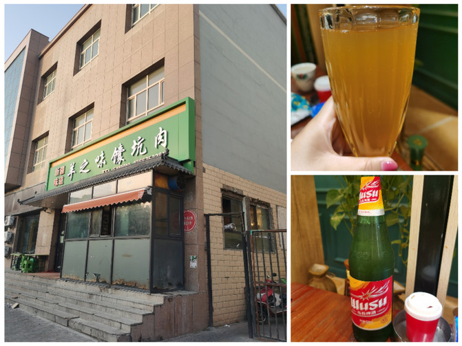 我们住在福兴酒店,走过来大概十分钟。餐厅大概外面十个小桌,里面还有几个包厢。菜单是纸质,直接自己勾选,我们选了几个评价比较好的。「乌苏啤酒」当地的特色啤酒给小伙伴儿点来尝了尝,只有四度,搭配烤串儿刚刚好。「卡瓦斯」卡瓦斯是当地的一种饮料,发酵制作,有一种怪怪的味道,没有喝出来是哪种水果,不过凉凉的还比较好喝。「菠菜面筋」这边吃的比较多的凉菜,红油凉拌,微微辣,菠菜量不多,想吃绿色菜的可以换其他的。「羊肉串」羊肉串是上来最快的,大块肉块,肉烤的比较嫩,吃着很过瘾。「馕坑肉」馕坑肉上来的慢,铁签位置比较烫,一定要注意。肉块比较紧实,口感比刚才的羊肉串要好吃。「烤羊脖」第一次吃,点的时候还有点小丢人,以为会是整个的,被告知是切开的,于是只点了一斤尝尝味道。骨头周围挂着肉,肉少的熟的快,肥肉会变得焦焦的很好吃。肉厚的地方火候欠一点,不太好咬。「馕饼」饼的点法是按牙,本来想一人一牙,结果看到隔壁桌一牙是很大一块,于是只点了一牙尝尝。刚上来的有一点点硬,但是比较翠,吃着还有淡淡的甜,很好吃。