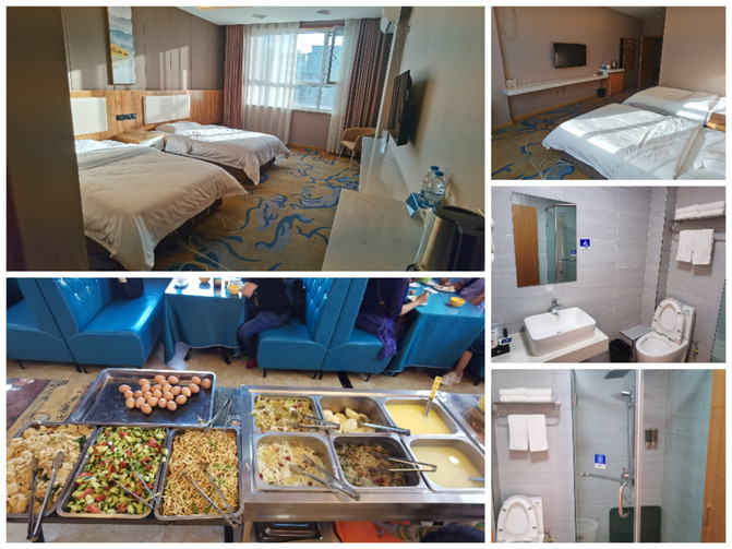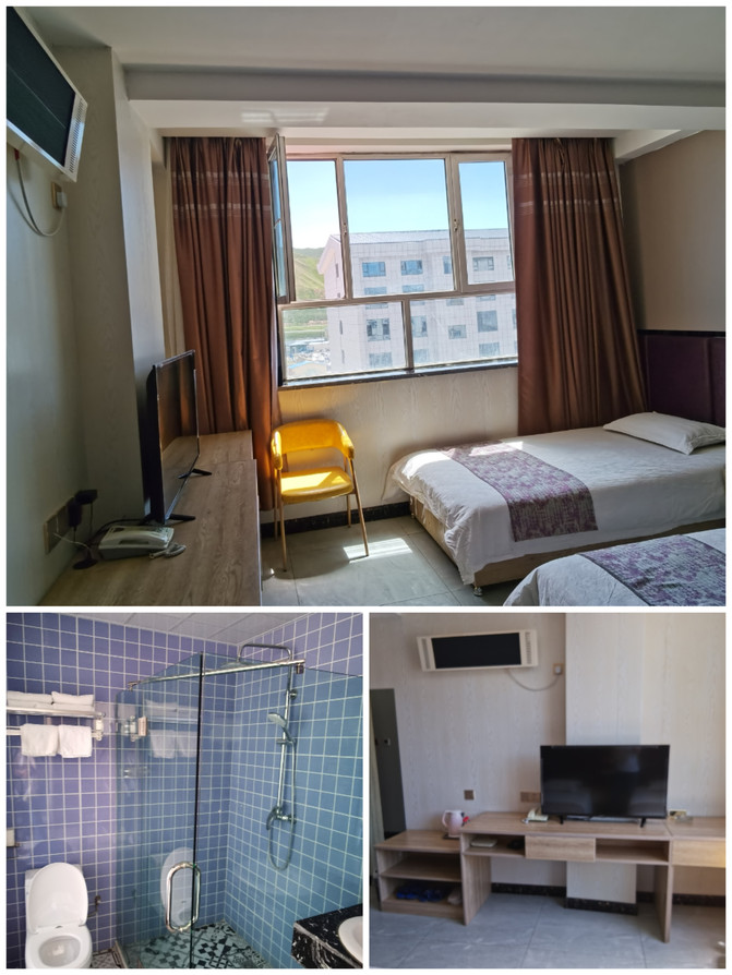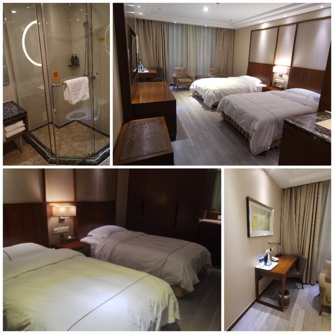 距离景区比较近,三星级酒店,共三栋楼,房间比较多,不过中间连廊多,有很多地方有台阶,拎着大箱子比较费力。房间面积比较大,有免费饮用水,设施齐全,有暖气,不过我们没找到遥控,还好现在天气还不算太冷。