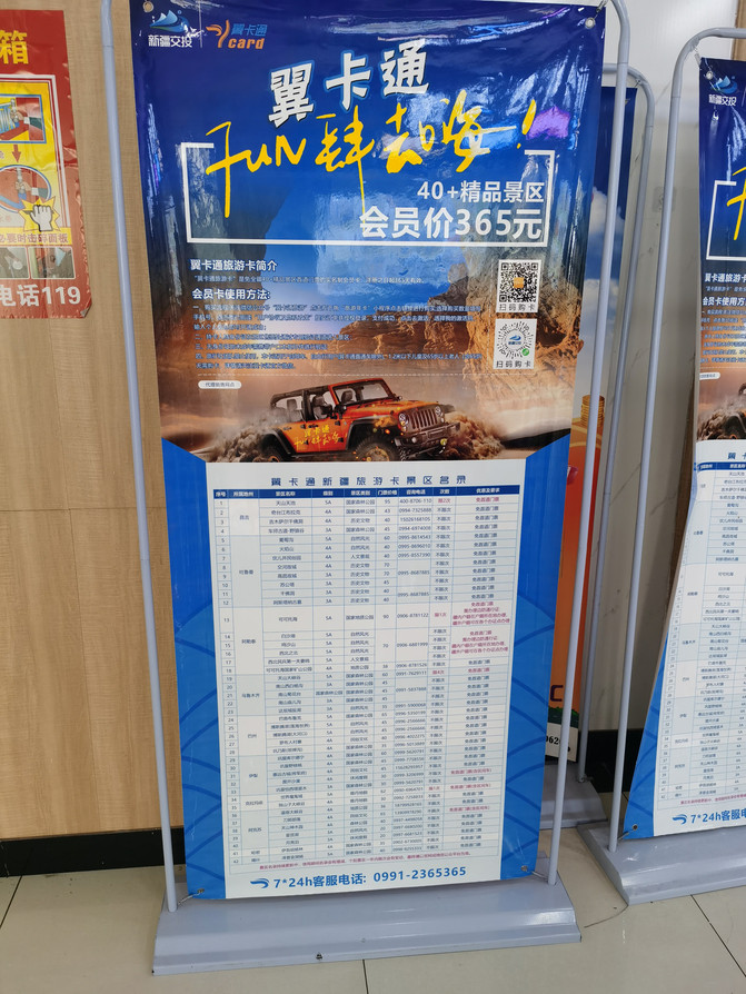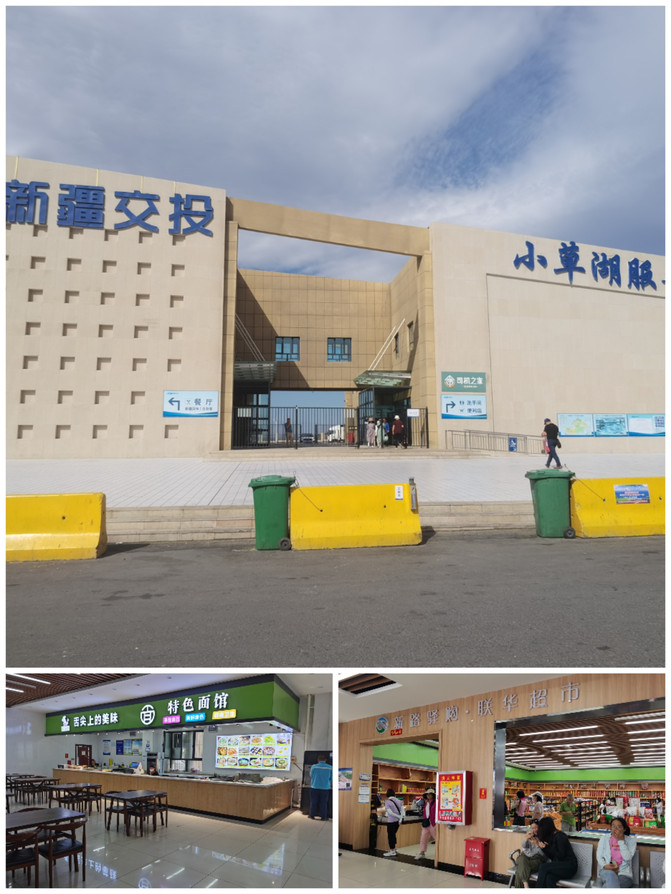 小草服务区面积还可以,里面有简餐,有小超市,有司机休息间,可以接热水。在大厅还看到有翼卡通新疆旅游卡,适合自驾游或者拼车游不含门票的全价票小伙伴,365一位,超级划算。