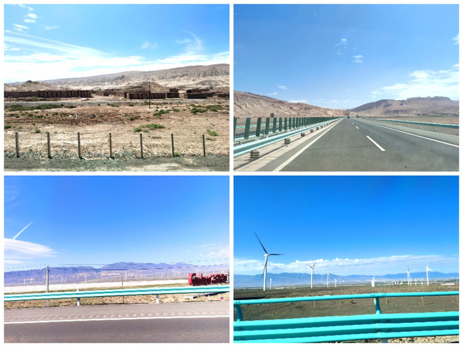 一路平坦,路过了达坂城盐湖、风力发电站、葡萄晾晒台。