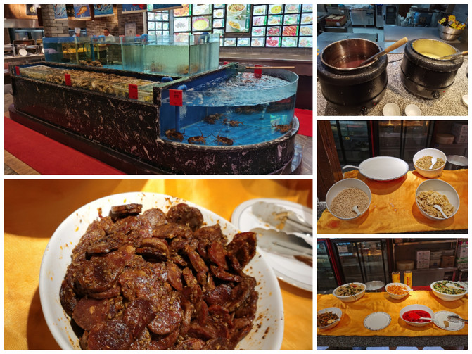 酒店餐厅在一层,门口刷房卡检查,有些房间是不含餐的,68元一位。餐厅看着很棒,有很多海鲜,正餐菜品应该会很不错。早餐的种类很多,零零散散几十种,酸奶搭配配了很多干料,早上就有大块头的虾和鱼块,主食也很多。建议小伙伴们在新疆的行程中,每一餐一定要多吃,因为路程都会比较长,而且味道有差距,所以自助的时候一定要选择和胃口的好好吃。