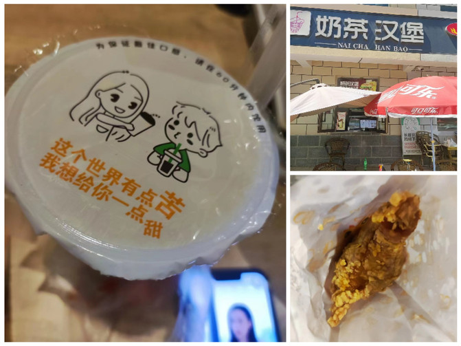 等肉串的时候看到不远处的这家奶茶,小伙伴过去买了奶茶和小吃。