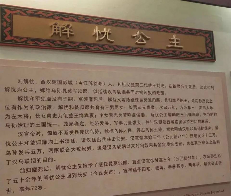 纪念馆不大,陈设也不多,主要是雕塑和图文介绍,但仍要推荐。解忧公主,名字温婉尔雅,她是对汉朝贡献最大的和亲公主,那段历史和她曲折坎坷的一生令人感叹。附近还有个伊犁哈萨克自治州博物馆,有时间可去。