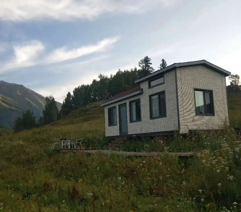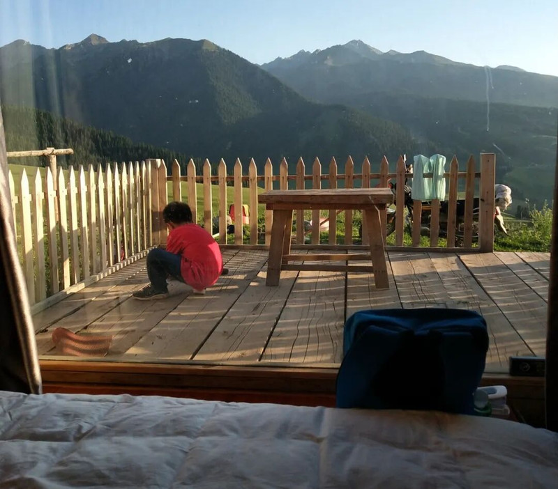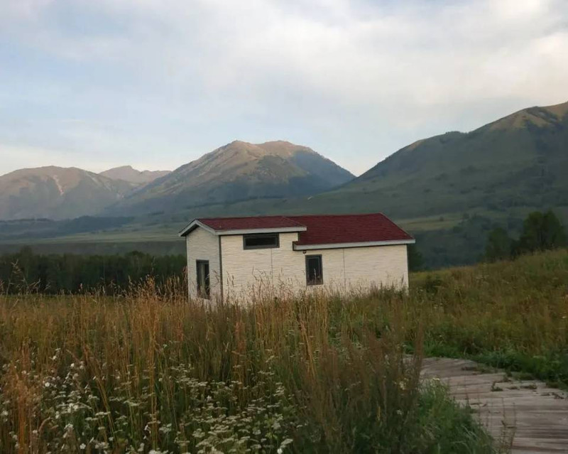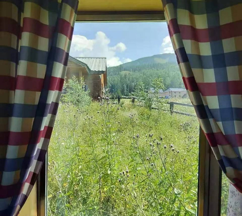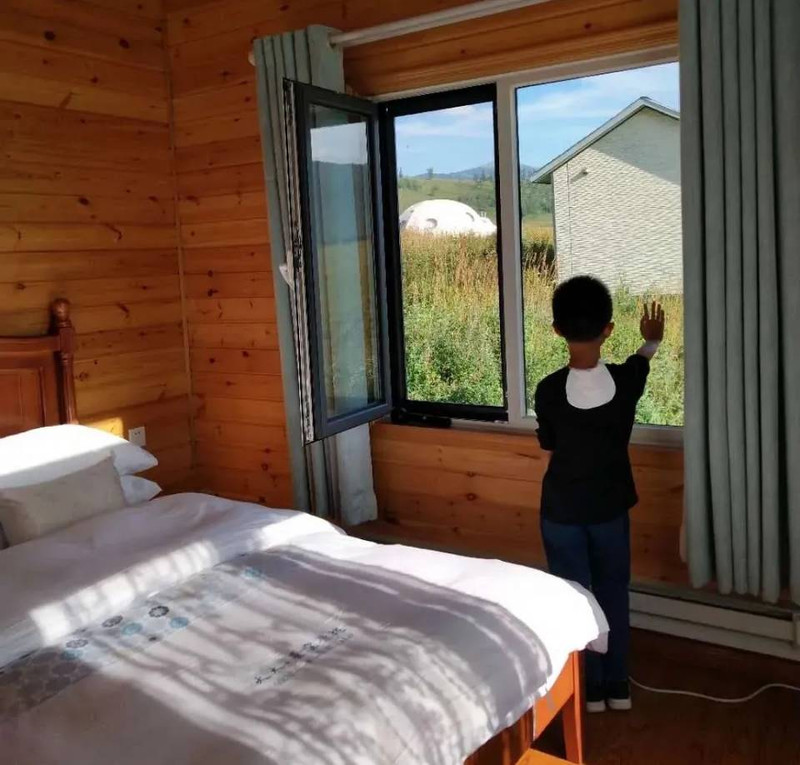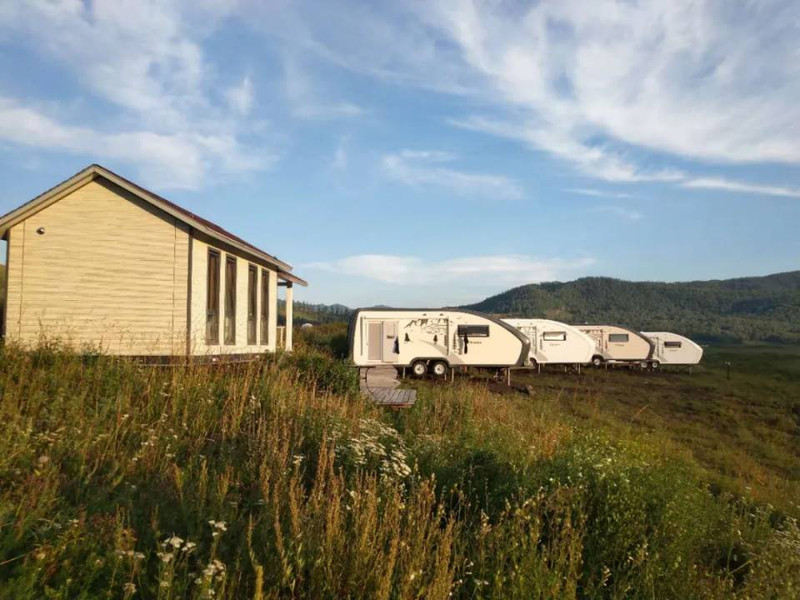 (1)和喀纳斯林海山庄一样,这是禾木的唯一官方酒店(这两个酒店旅行团绝无可能安排,只能靠自己做功课)。高山草原间的房车亲子房(内有套间,可住四人)。酒店房间非常紧俏,需提前预定(这个房型仅此一间)。我们是五月下旬定的这间房,时间精准到8月5日入住,如期抵达。