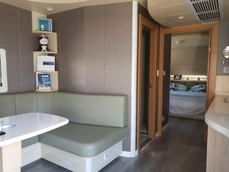 (2)酒店周边,除了房车亲子房,还有一间房车房(适合双人入住),这两个房型拥有独立区域。其余还有多间帐篷房和房车公寓房,每种房型都有独立卫生间,尤其是帐篷房,小小的空间各项设施一应俱全,体验感应该也不错。