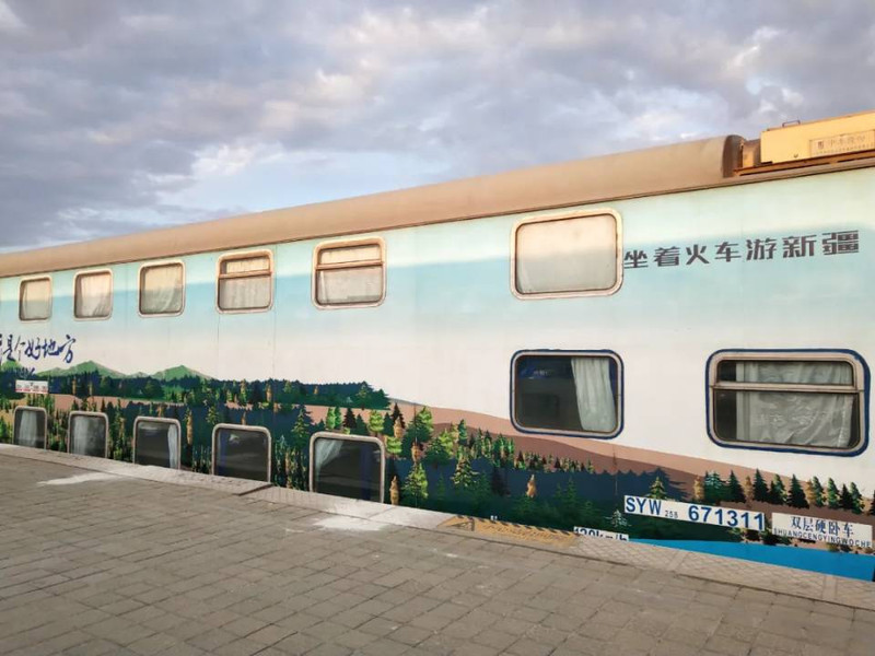 旅游专列和一般普铁不同,它的硬卧是四人包间,软卧是双人包间。我们一行四人,硬卧正合适。夕发朝至,到达伊宁的时间刚刚好。