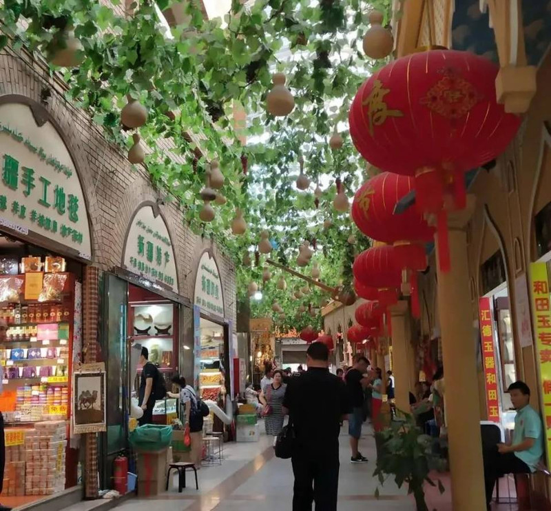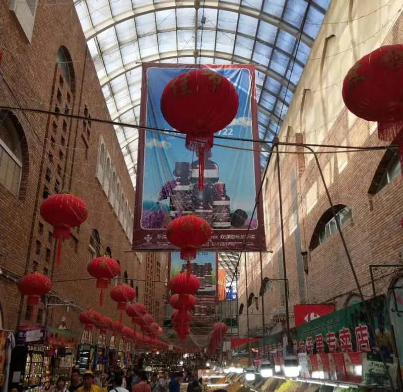 地标建筑,央视天气预报乌鲁木齐的背景照就是这里,也叫二道桥大巴扎,就是步行街,维吾尔族文化表现最集中的地方。内有各式新疆特色食品、手工艺品。广场中心的丝绸之路观光塔,塔内各层都有彩绘和展览,可以一登塔顶俯瞰城市风光,观光塔下经常有市民随着歌声欢快起舞。