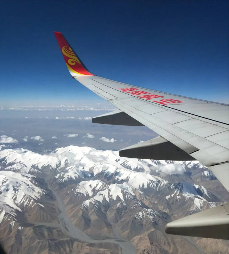 乌鲁木齐到喀纳斯的飞行途中,山顶白雪皑皑
