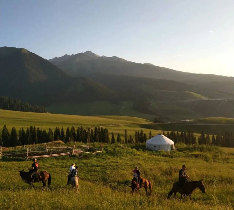 (5)晚上22:00—24:00哈萨克族篝火晚会,在其他酒店的游客需要乘车过来观看,凌晨还要返回。而住在星空营地,从房间步行200米即到。