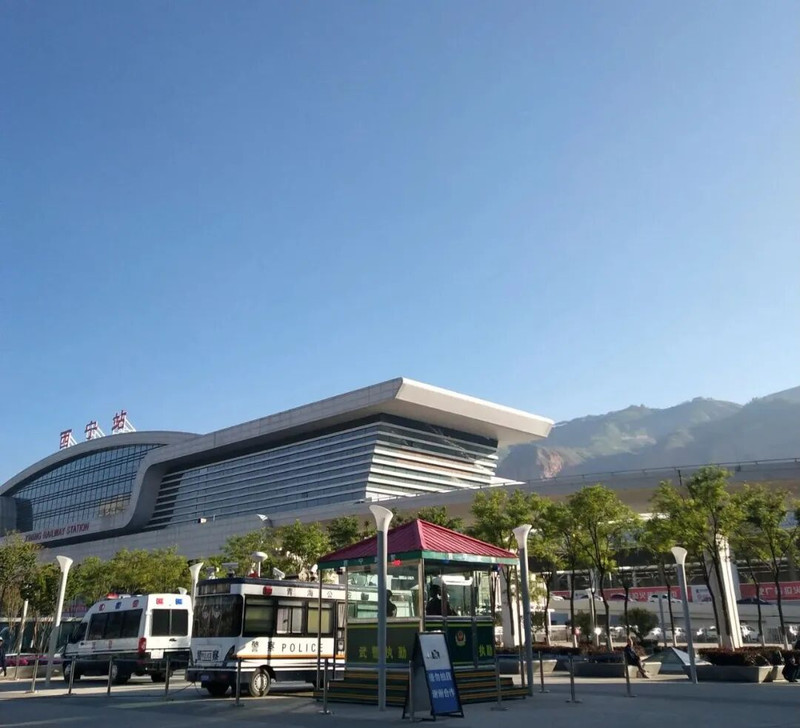 山脚下的西宁站,拍照的位置就在酒店门口,出门就可进站上车。
