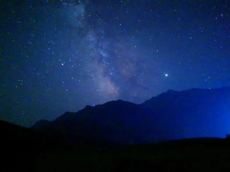 晚间,可见银河灿烂,满天繁星点点,不可捉摸的律动,神秘而深邃。