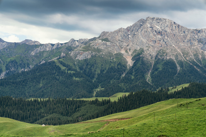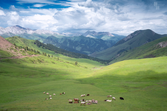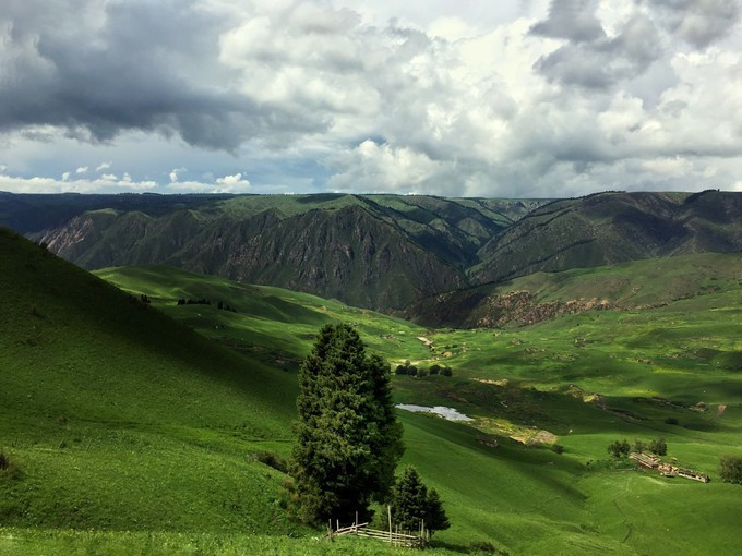 爬到最后的垭口,眺望整片草原,一束束光影从草原飞速掠过,有时照亮一座山坡,有时照亮一片湖水,有时候照亮一间木屋,有时照亮一棵树。绿色的波浪,或深或浅,就是藏在深山里的圆舞曲。