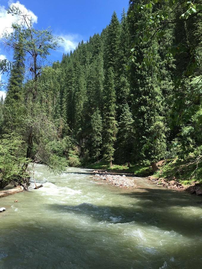 ???????加撒干-琼库什台大约20公里,强度不算大,但峡谷多岔口,且森林容易迷路,建议请一名当地向导(通常是马夫)。山区天气多变,如果遇到冰风暴之类的险恶天气,将非常危险。游客在穿越途中迷路两三天,甚至去世的事件屡有发生,本着对自己负责的原则,要做好万全准备。 Day6 向往乌孙古道,偶遇特克斯大峡谷