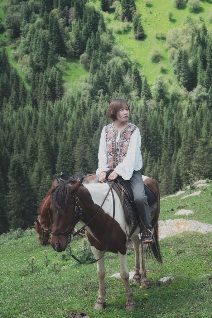 ???????我们决定骑马往森林深处走,那里非常非常深的地方就是乌孙古道,是向南穿越天山的一条通道。今天我们连古道入口都走不到,但这一路风景依然很好。