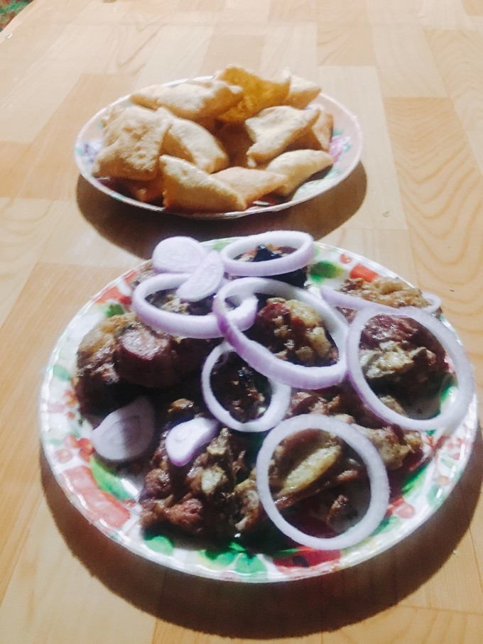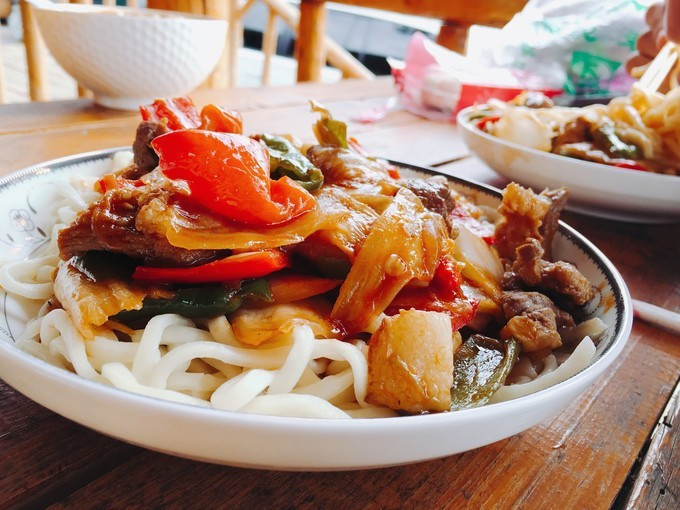 过油肉拌面及一切拌面:很地道的新疆菜,主料是羊肉,配着洋葱、西红柿、辣椒一起,劲道!我们白天大部分时间在路上,都是吃路餐,拌面好吃又顶饱。