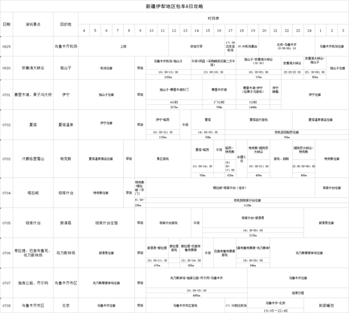 想看路线大图或者表格的朋友可以留言。 [出发新疆前,你可能要考虑的N件事情]