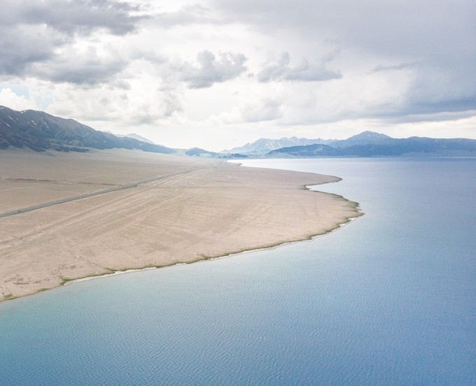 车还没有开到赛湖,远远就看到湖的东边下雨,西边晴,雪山顶上堆满了积雨云。没多久阴云四起,乌云翻滚,像乌贼一样快速弥漫了整片西边,雪山被雨水挡住了。即使没有蓝天映照,湖水也沁心的蓝。湖边拍起浪,风吹得更紧,水汽朦胧,湖边的两只天鹅,渐渐消失于湖心。