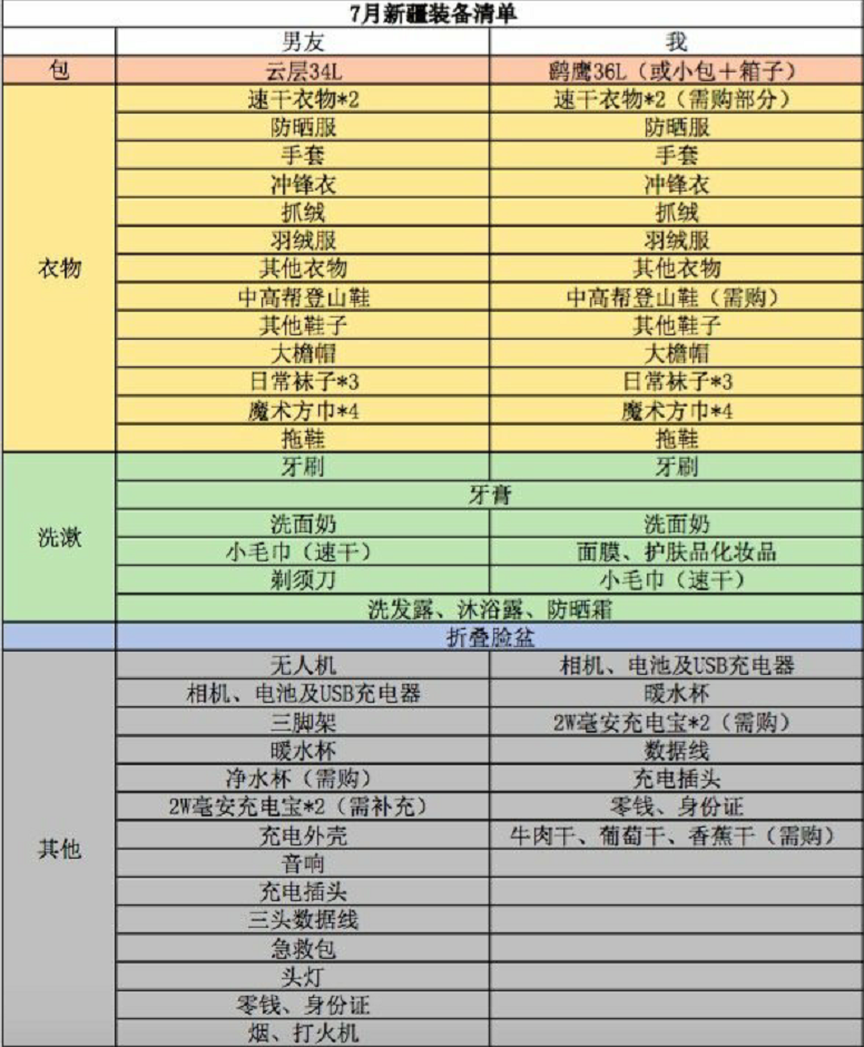 每次出游,感觉要准备的东西太多啦,有点无从下手。还好男友是个“excel系”伴侣,他会将所有物品分门别类地罗列给我看。