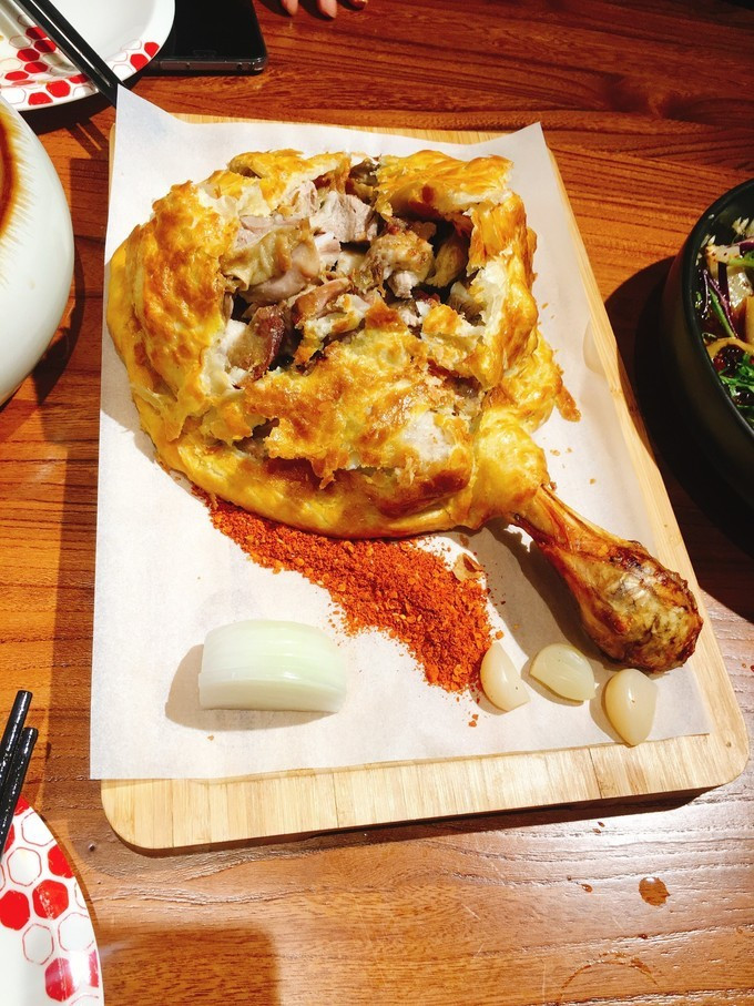 酥皮烤羊腿:乌鲁木齐石榴红了餐厅的一道网红菜,酥皮脆到满口掉渣,裹着羊肉吃层次丰富。不过是相对较汉化的菜了。
