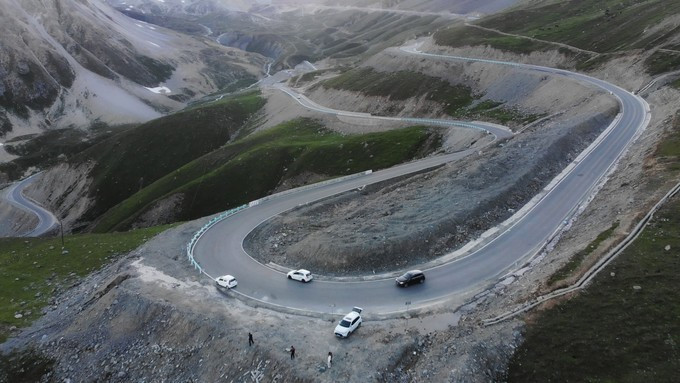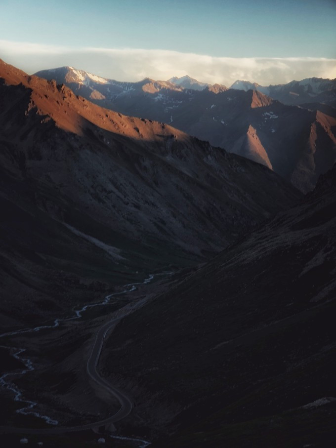 ???????车一路盘旋而上,我们停下来在山峰间行走,在夕阳时看日照金山,在翻越哈希勒根达坂时,见识了防雪走廊、雪墙和神秘的冰湖。经过最陡峭的“老虎口”时,天已黑透,悬崖峭壁形成一股压迫感,让心不由自主揪起来。