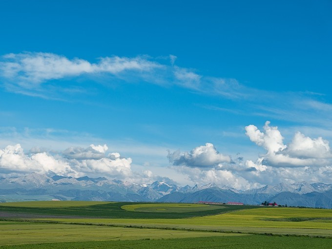 在巩留停留了一晚,今天我们又重返昭苏。万亩油菜花刚刚开败,留下零星的黄。新疆广袤的农田,随时都能成为花海——向日葵、紫苏花、薰衣草。不同于江南的娟秀,它的美是大气磅礴的。