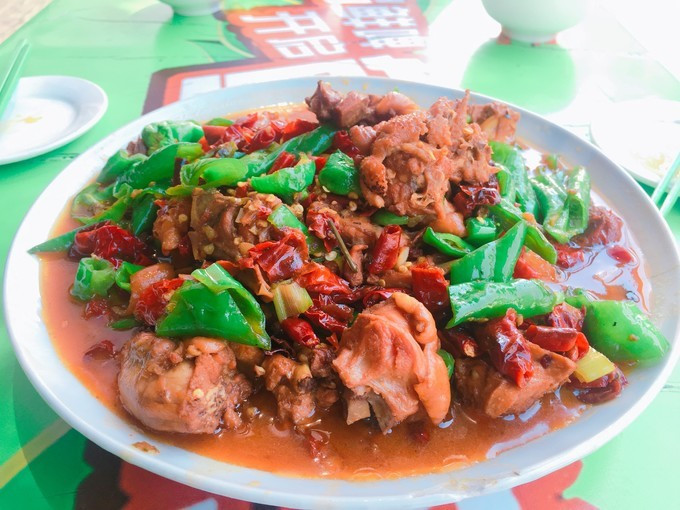 大盘鸡:其实是汉人到新疆来发明的一道菜,颇有川菜的风味。我们在最富盛名的沙湾,吃到了正宗大盘鸡。