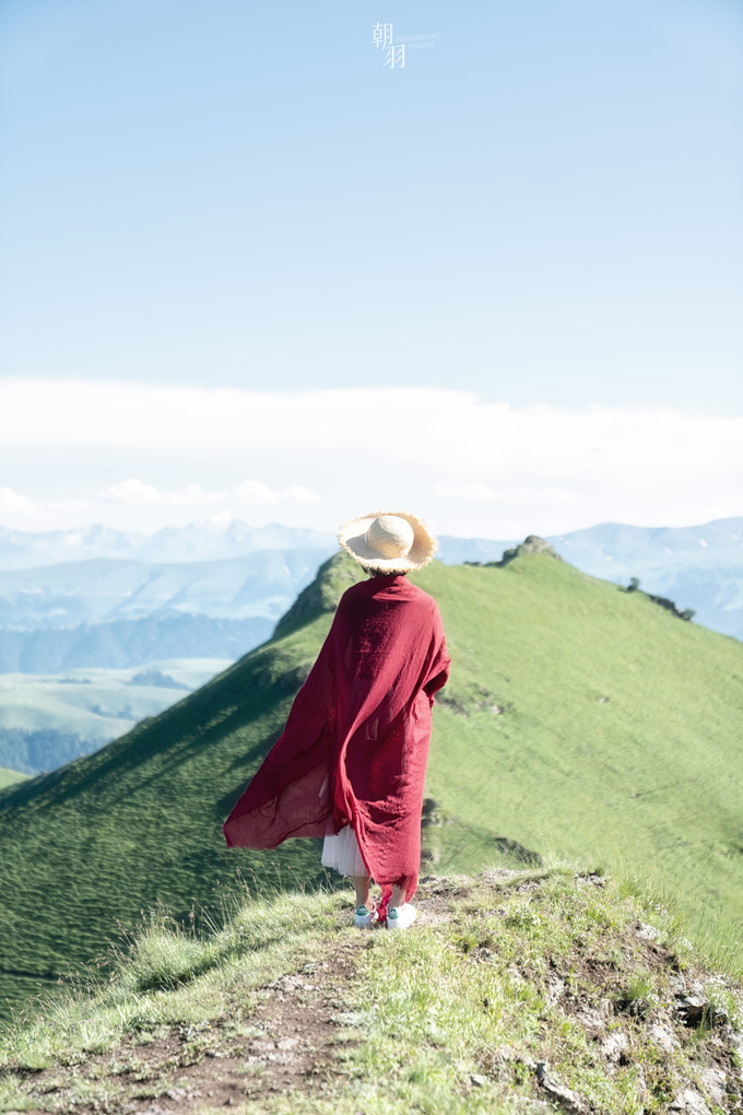 (2)穿搭:整个西北的颜色很干净,大片的草原(绿色系)、沙漠戈壁(黄色系),还有高山湖泊(蓝色系),蓝天白云。个人觉得出片率比较高的是红/白色系长裙,以及民族风和森女风。此外,红色围巾可以解锁一切难题。(新疆温差大,伊犁地区海拔较高,建议带一件轻薄羽绒服和外套)