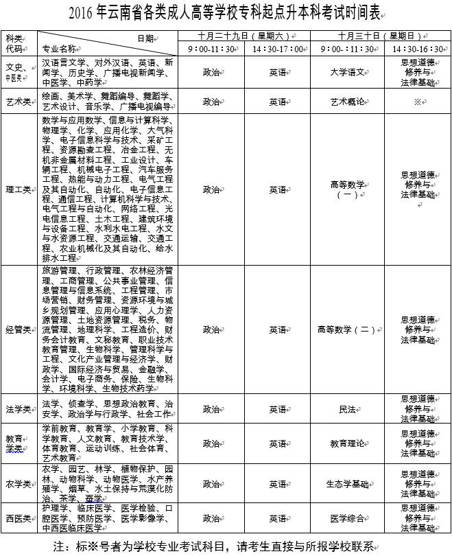 | 2016年云南省成人高考考生报名、考试、查询成绩等须知